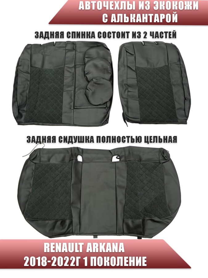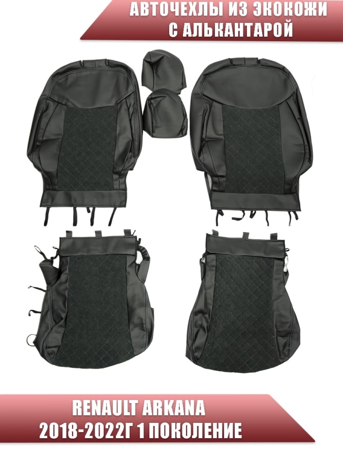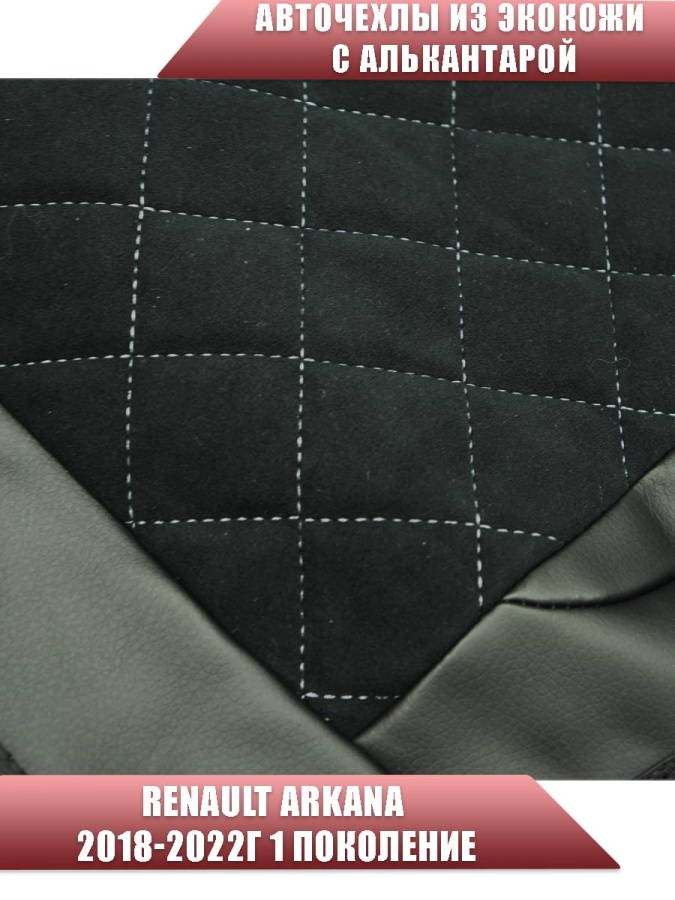 Авточехлы Renault Arkana Рено Аркана 2018-2022г экокожа алькантара черная серая нить ромб