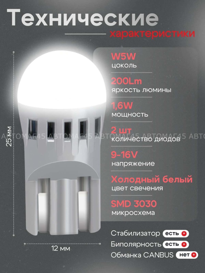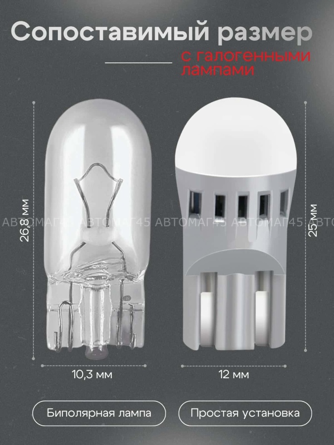 Обновите освещение вашего автомобиля с нашими светодиодными габаритными лампочками W5W — сделайте свой автомобиль ярче и безопаснее!