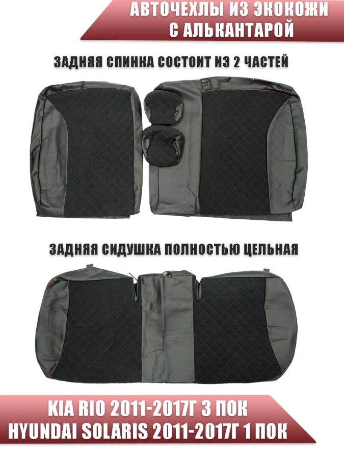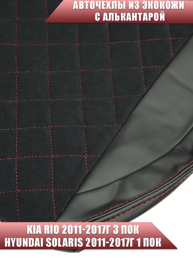 Авточехлы Kia Rio Киа Рио 2011-2017г Hyundai Solaris 2011-2017г экокожа алькан черная крас.нить ром