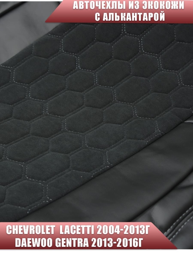 Авточехлы Chevrolet Lacetti Лачетти Daewoo Gentra Дэу Джентра экокожа алькан черная серая нить соты