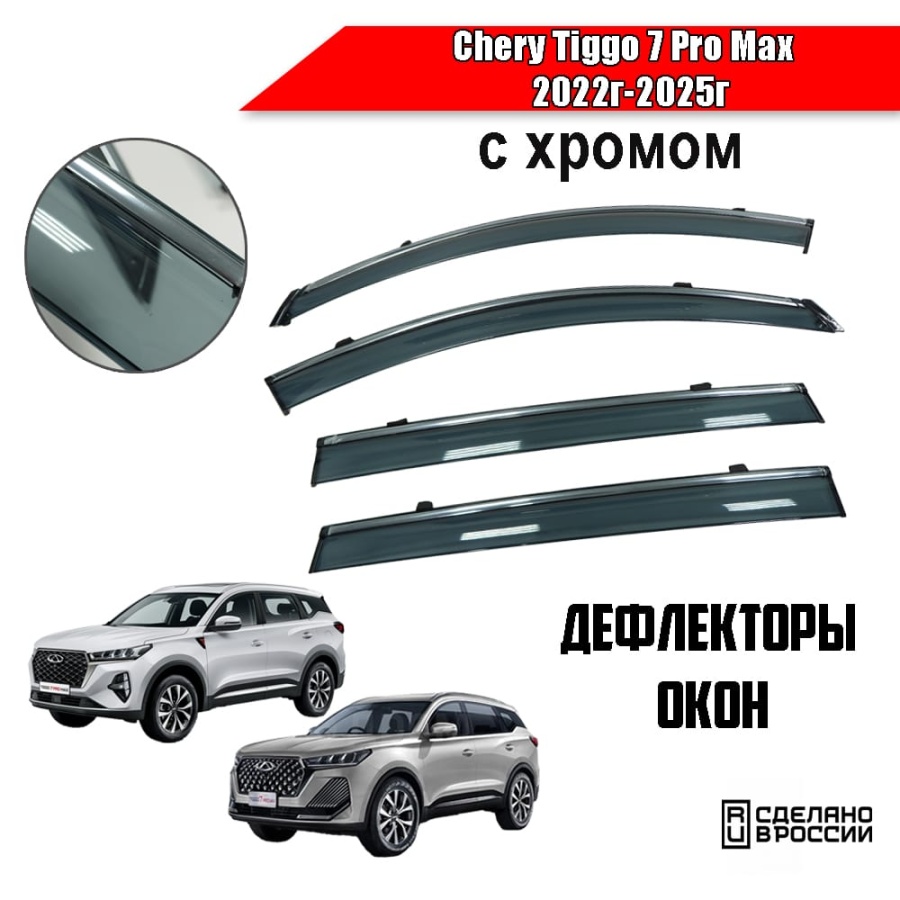 Дефлекторы окон Chery Tiggo 7 Pro Max 2022-2025г Тигго 7L Chery Tiggo 7 Pro 2019-2024г с хромом