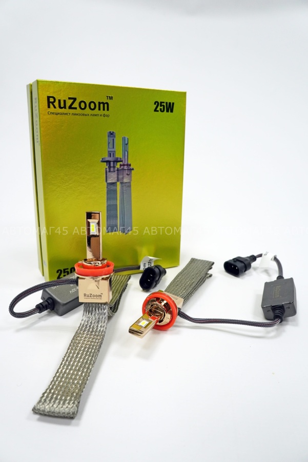 Ruzoom T12 LED 2шт H11 12В 25W 6000K 2500Lm с пассивным охлаждением гарантия 6мес