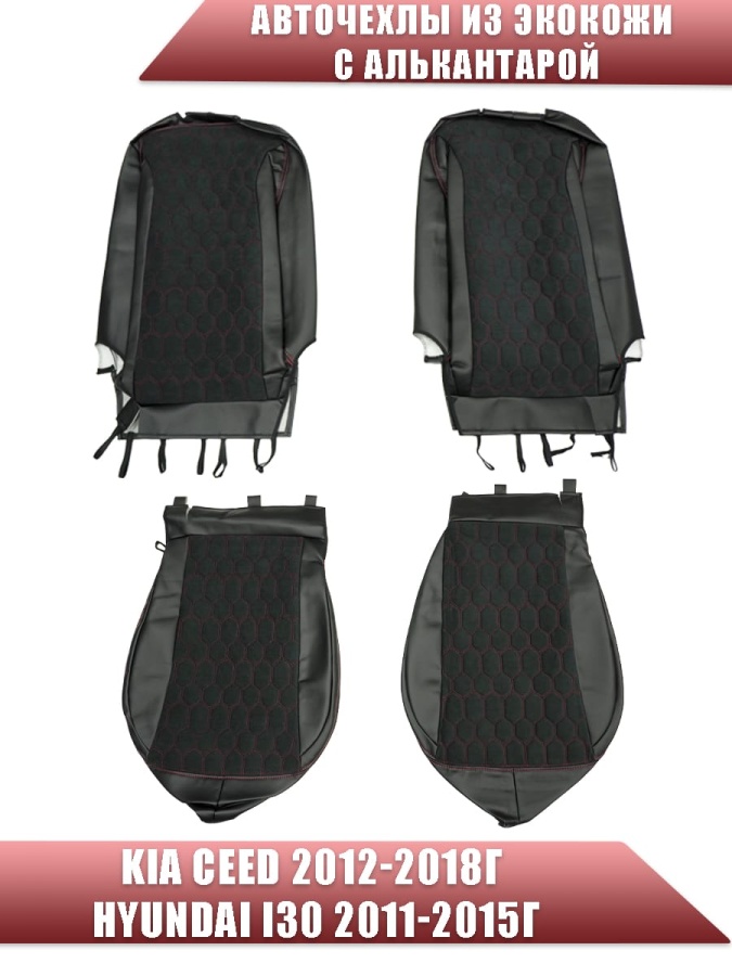 Авточехлы Kia Ceed Киа Сид 2012-2018г Hyundai i30 2011-2015г экокожа алькант черная красн нить соты