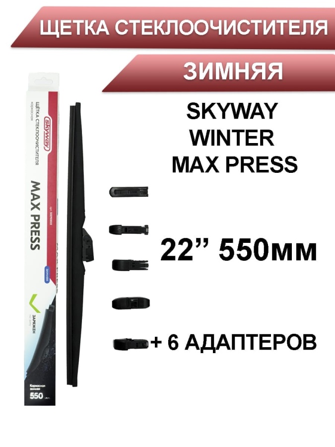 Skyway Winter Max Press щетка стеклоочистителя зимняя 6 адаптеров 550мм