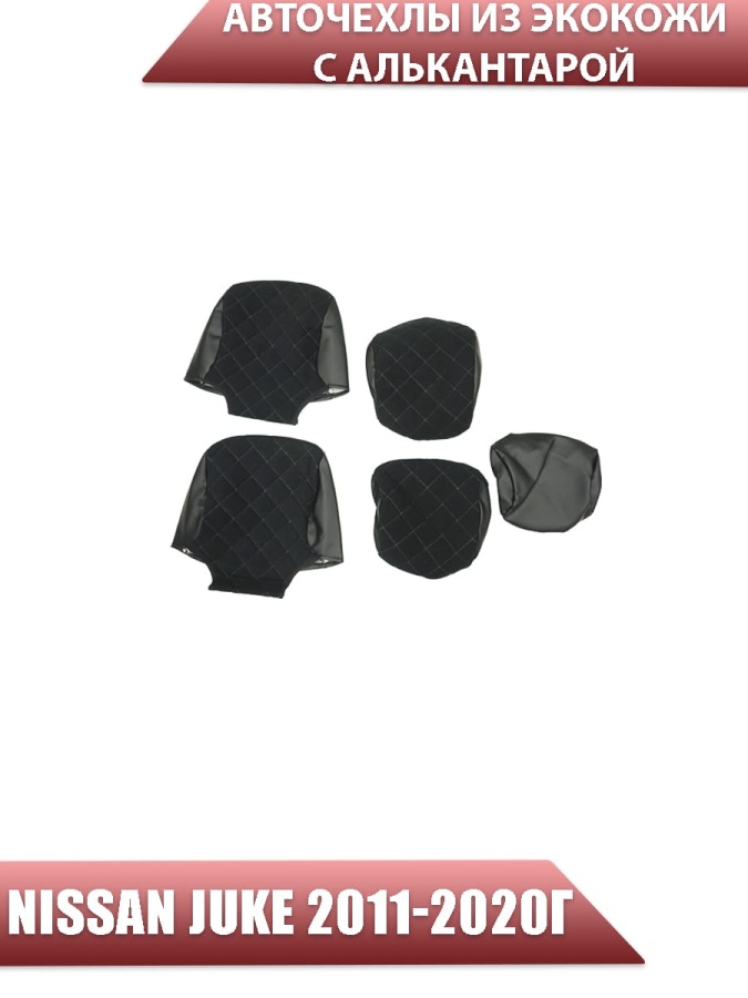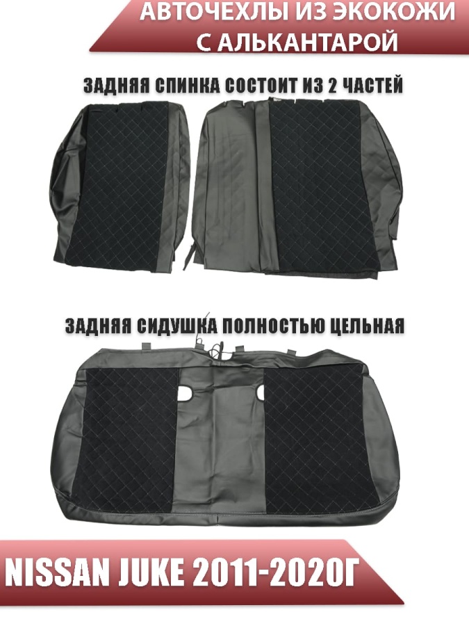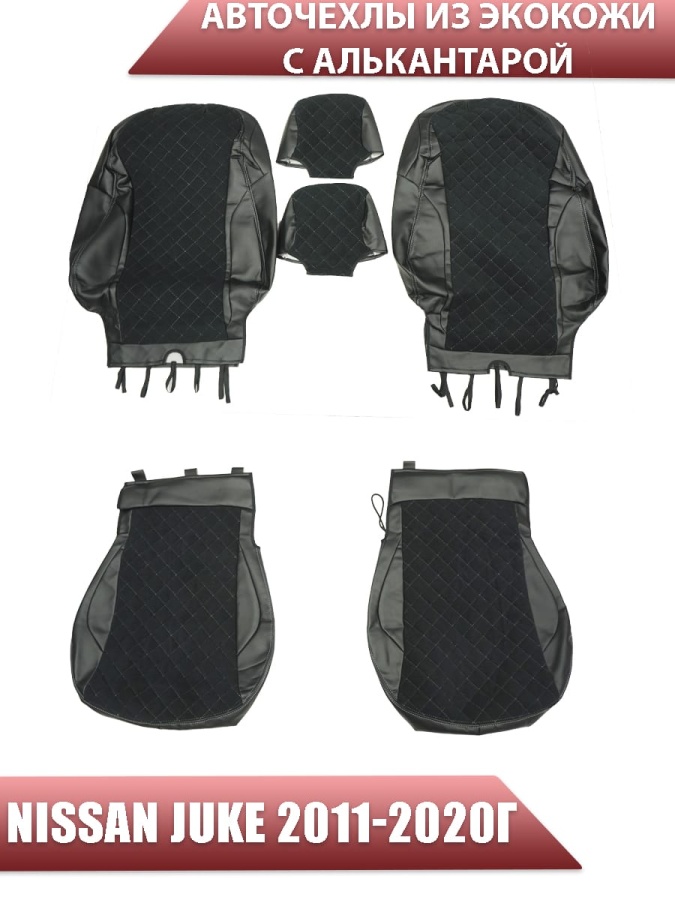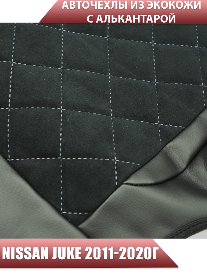 Авточехлы Nissan Juke Ниссан Жук 2011-2020г экокожа алькантрара черная серая нить ромб