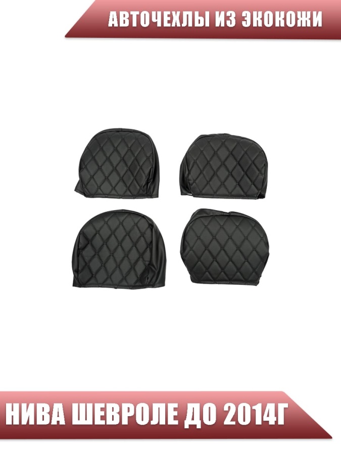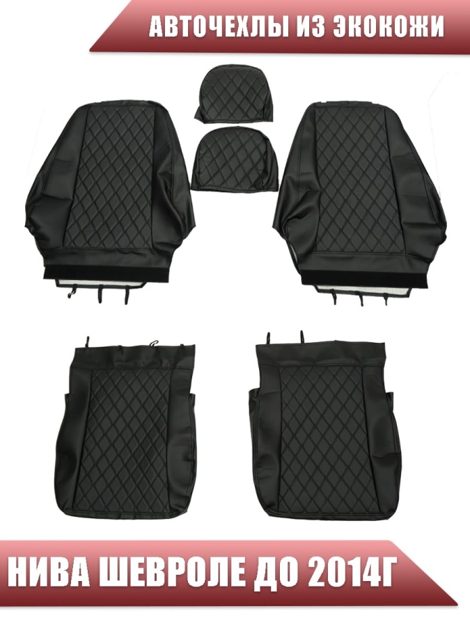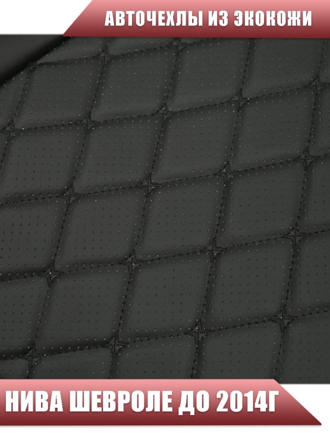 Авточехлы Нива Шевроле Niva до 2014г экокожа черный с черной ниткой ромб бабочка