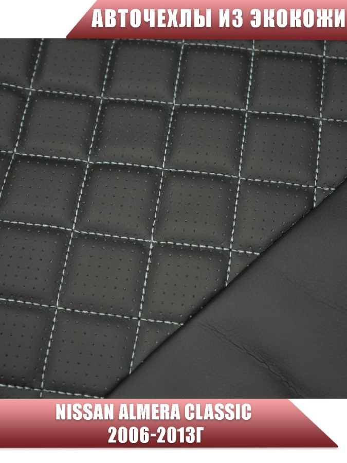 Авточехлы Nissan Almera classic Ниссан Альмера классик 2006-2013г экокожа черный ромб серая нить