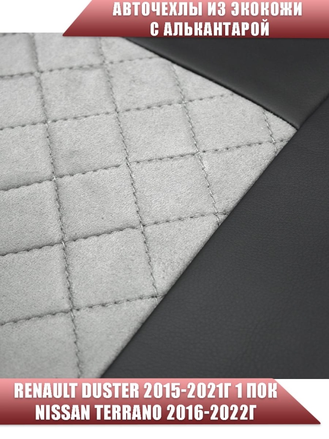 Авточехлы Renault Duster Рено Дастер 2015-2021г 1пок 2/3 Terrano 16-22г экокож/алькан ч/серая ромб