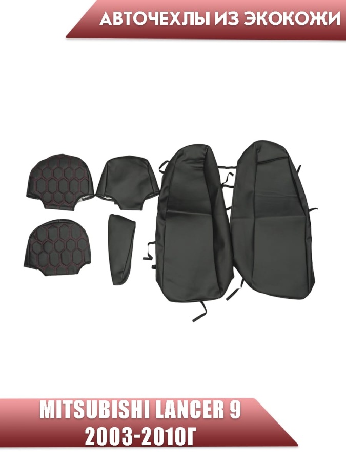 Авточехлы Mitsubishi Lancer 9 Мицубиси Лансер 9 2003-2010г экокожа черная красная нить соты