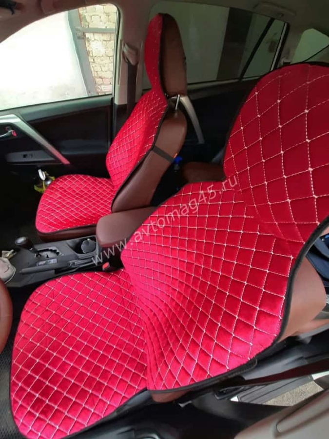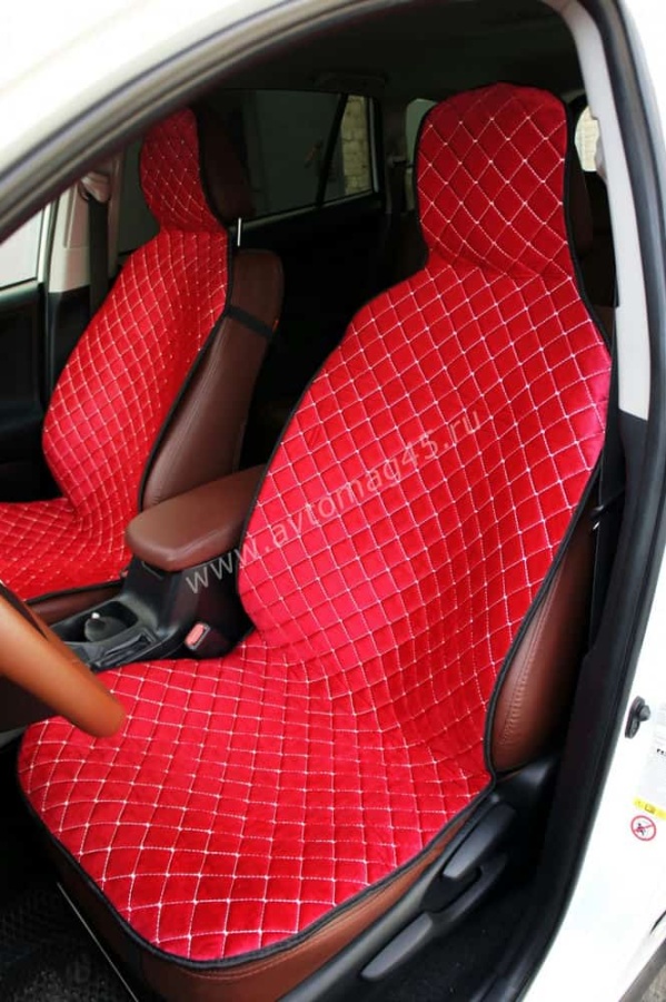 Автотренд Накидки на сиденье на силиконе без боков велюр красный 2шт