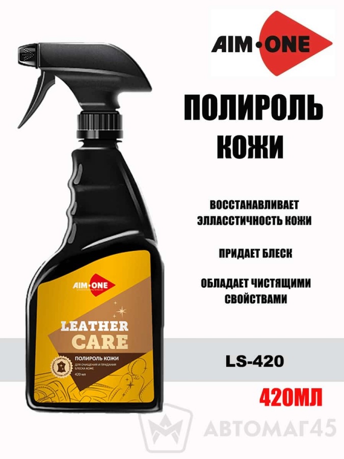 Полироль кожи Leather Сare обладает чистящими свойствами: эффективно удаляет загрязнения, а также предотвращает накопление на поверхности пыли и грязи. Широко применяется в автосфере и быту – в офисных помещениях, домашнем интерьере. Предназначен для изделий из разных типов кожи любых оттенков: натуральной, искусственной, а также каучука. Современная формула полироли от AIM-ONE сохраняет эластичность кожи. Быстро впитывается, не оставляя разводов и пятен. Приятный аромат лимона.