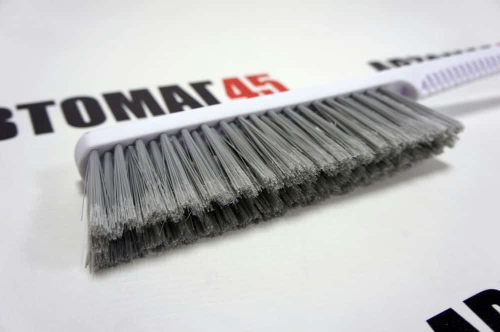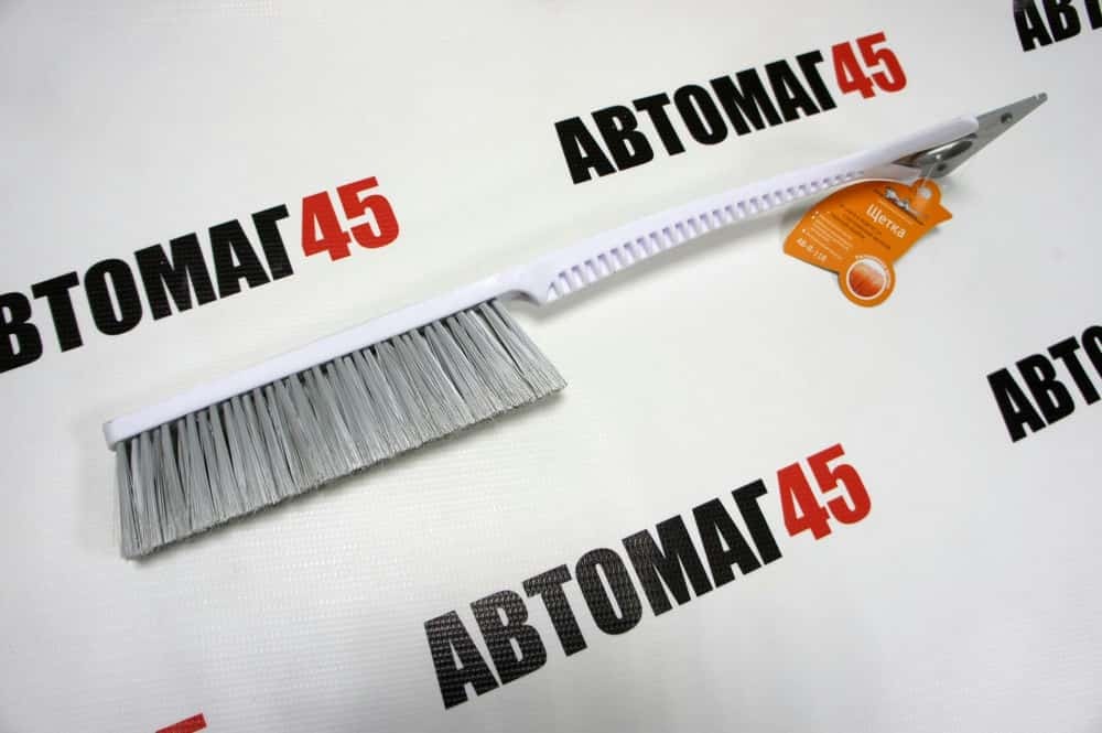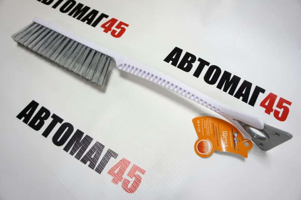 Ручка выполнена из ребристого пластика, что делает ее внешне привлекательной и недорогой. При этом длина щетки =52 см! Щетка имеет трехрядную щетину, которая позволяет легко убирать даже залежавшийся снег с автомобиля. Распушенная щетину, которая позволяет проводить очистку снега с лакокрасочной поверхности автомобиля максимально деликатно. И самая главная "фишка" - съемный треугольный скребок. Скребок имеет 3 рабочие поверхности, что увеличивает срок его эксплуатации в 3 раза! Так же вам не нужно использовать всю щетку, если необходим для работы только скребок - снимаете его со щетки и используете отдельно! А если вы едете вдвоем - то водитель может убирать снег, а пассажир скребком чистить окна )