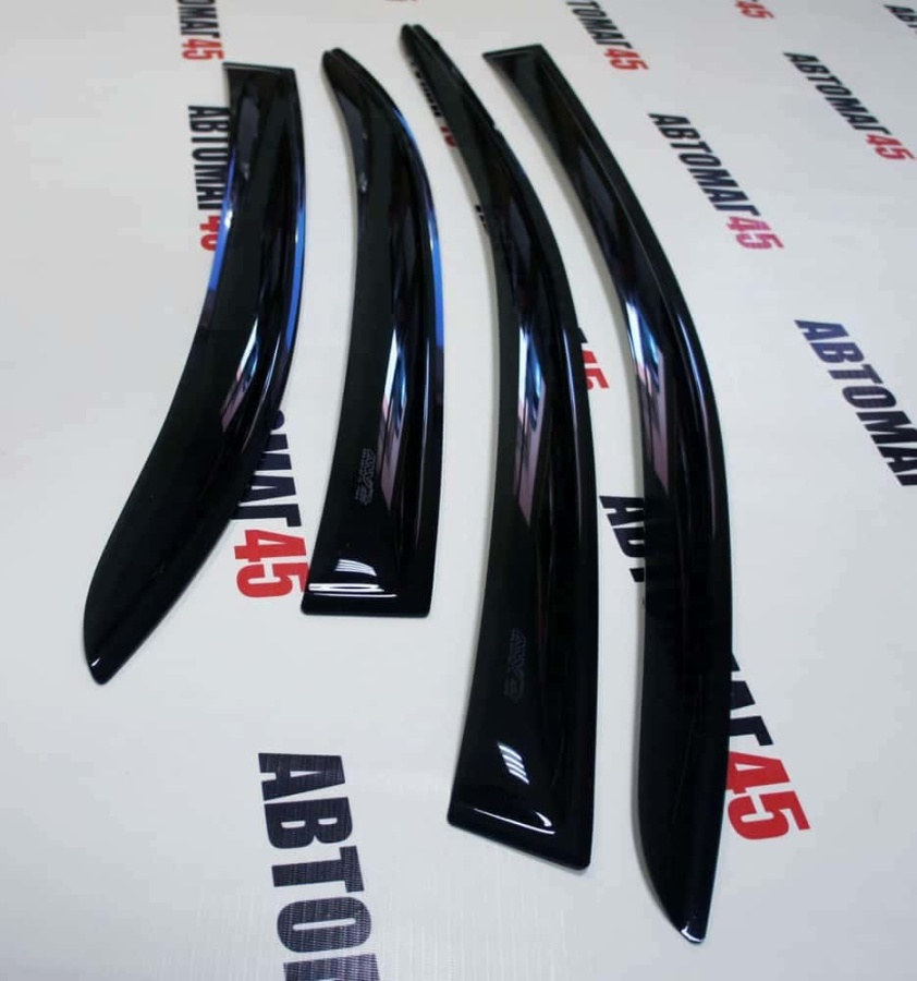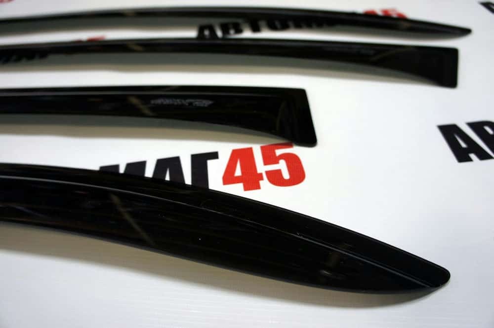 Дефлекторы (ветровики) препятствуют попаданию осадков в приоткрытые окна автомобиля. Каждый дефлектор разрабатывается с индивидуальными особенностями каждой марки автомобиля, который по форме полностью повторяет контуры внешней рамки двери.