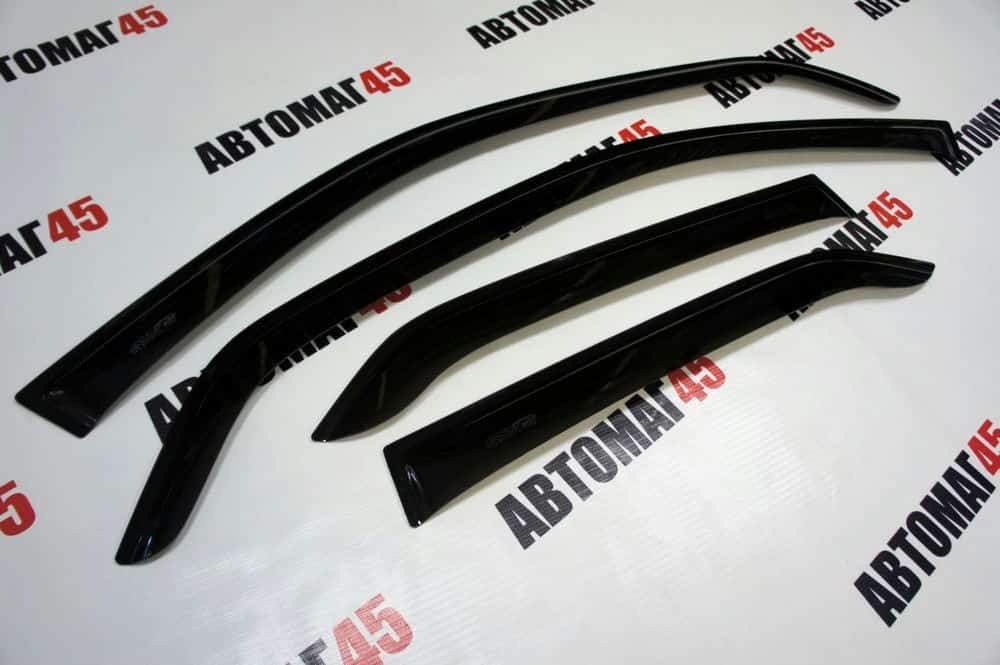 Дефлекторы (ветровики) препятствуют попаданию осадков в приоткрытые окна автомобиля. Каждый дефлектор разрабатывается с индивидуальными особенностями каждой марки автомобиля, который по форме полностью повторяет контуры внешней рамки двери.