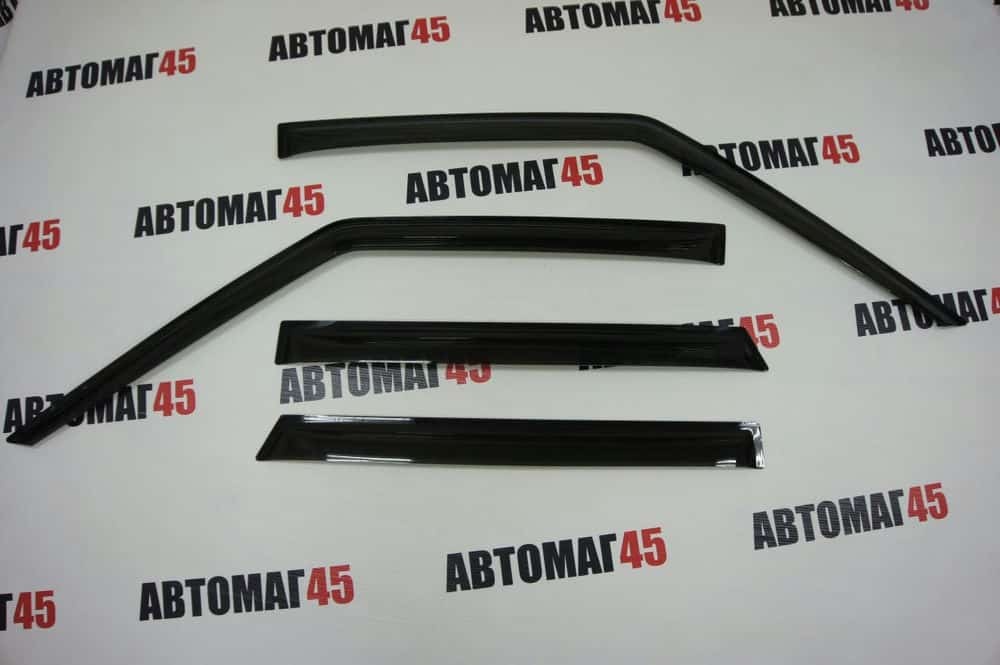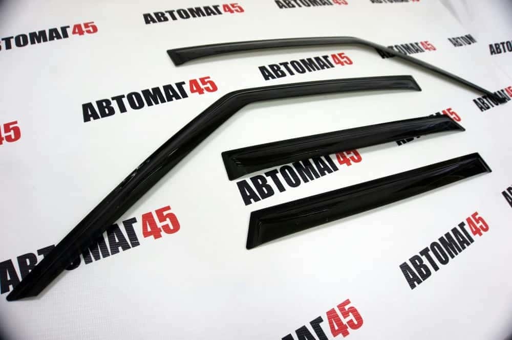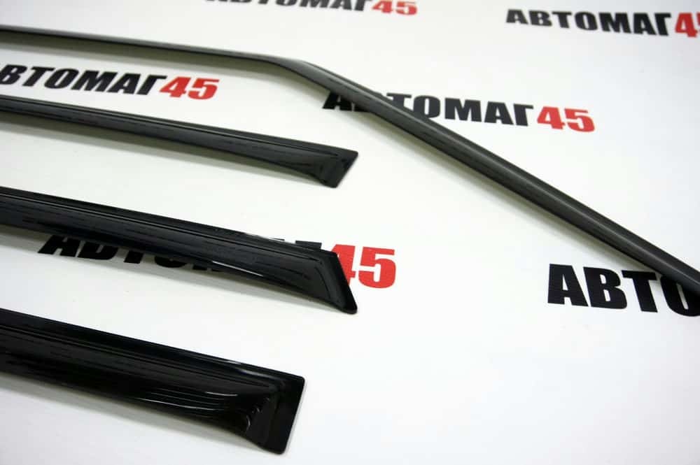 Дефлекторы (ветровики) препятствуют попаданию осадков в приоткрытые окна автомобиля. Каждый дефлектор разрабатывается с индивидуальными особенностями каждой марки автомобиля, который по форме полностью повторяет контуры внешней рамки двери.