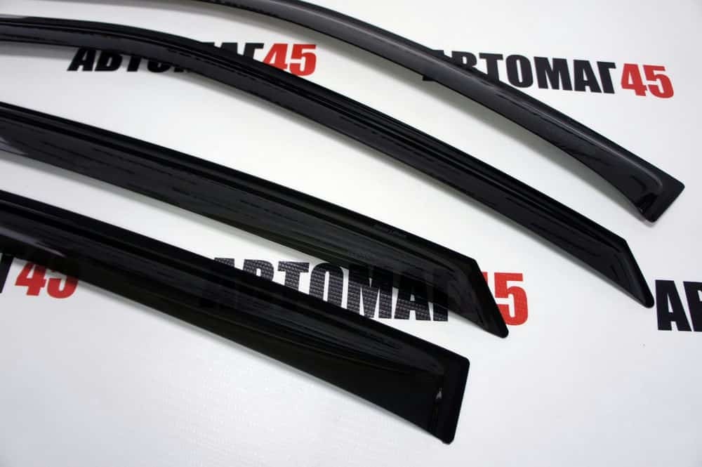 Дефлекторы (ветровики) препятствуют попаданию осадков в приоткрытые окна автомобиля. Каждый дефлектор разрабатывается с индивидуальными особенностями каждой марки автомобиля, который по форме полностью повторяет контуры внешней рамки двери.