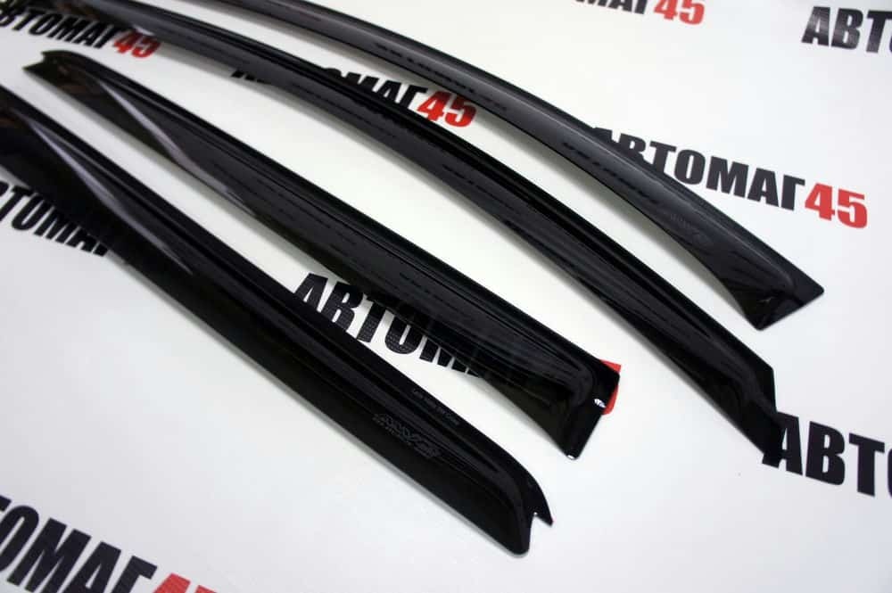 Дефлекторы (ветровики) препятствуют попаданию осадков в приоткрытые окна автомобиля. Каждый дефлектор разрабатывается с индивидуальными особенностями каждой марки автомобиля, который по форме полностью повторяет контуры внешней рамки двери.