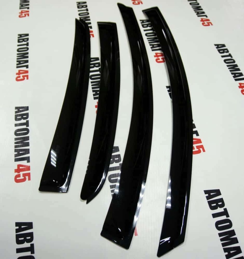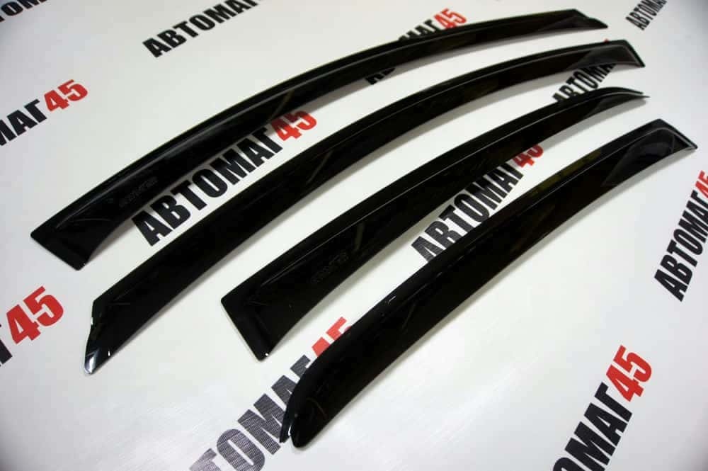 Дефлекторы (ветровики) препятствуют попаданию осадков в приоткрытые окна автомобиля. Каждый дефлектор разрабатывается с индивидуальными особенностями каждой марки автомобиля, который по форме полностью повторяет контуры внешней рамки двери.