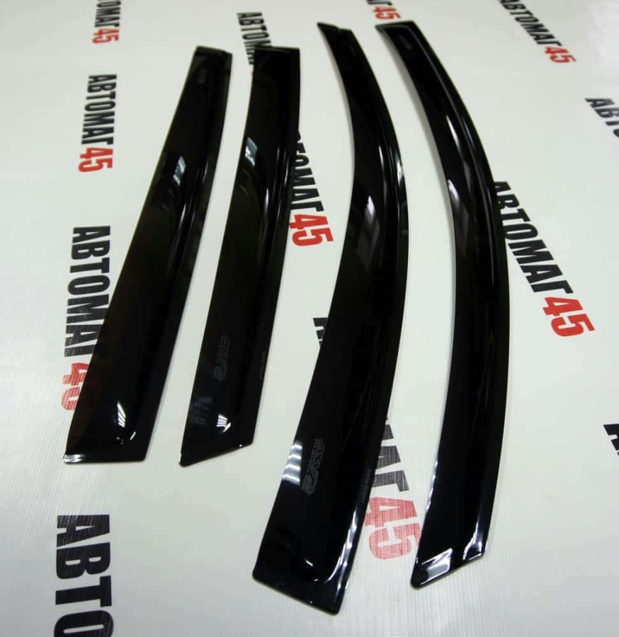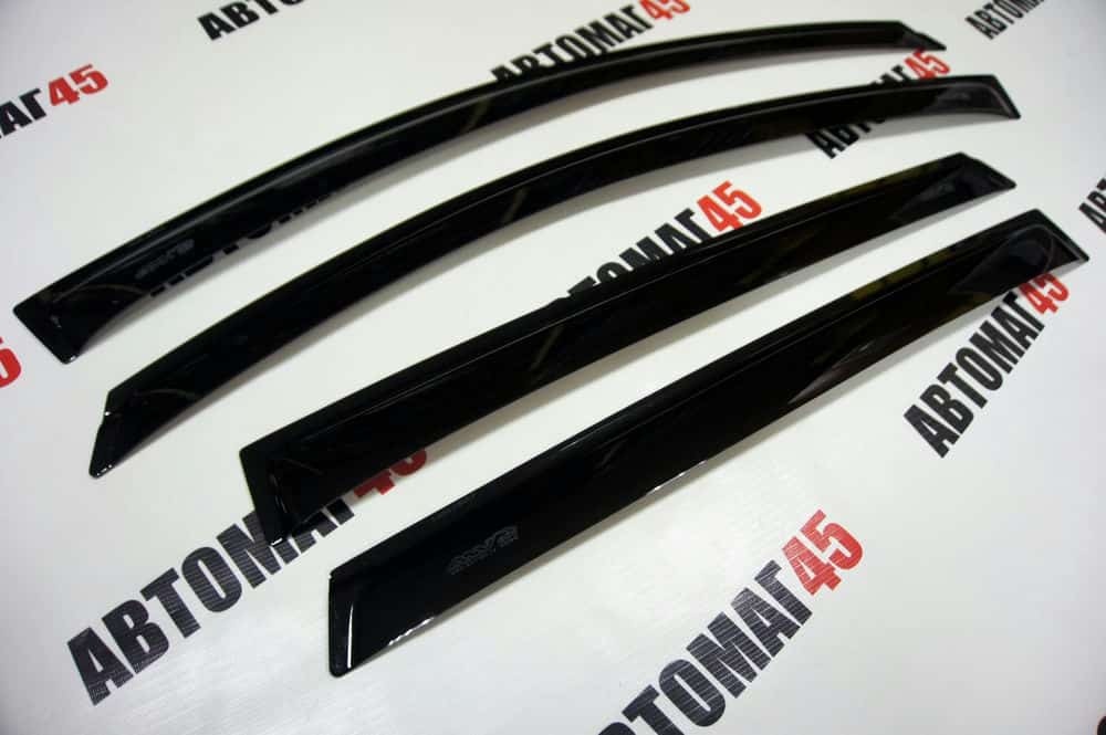 Дефлекторы (ветровики) препятствуют попаданию осадков в приоткрытые окна автомобиля. Каждый дефлектор разрабатывается с индивидуальными особенностями каждой марки автомобиля, который по форме полностью повторяет контуры внешней рамки двери.