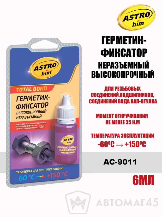 Астрохим герметик фиксатор термостойкий неразъемный синий 6мл