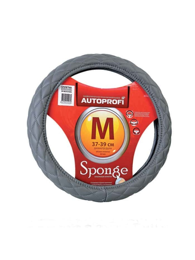 Autoprofi оплетка руля экокожа спонжевая стёганая серый размер М SP-9010