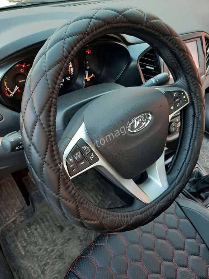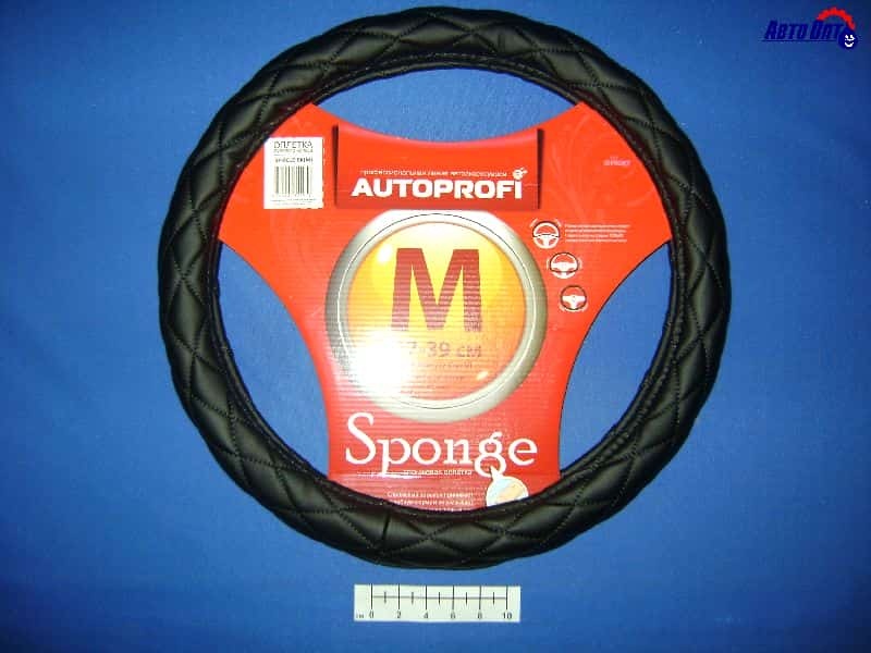 Autoprofi оплетка руля экокожа спонжевая стёганая черный размер М SP-9010