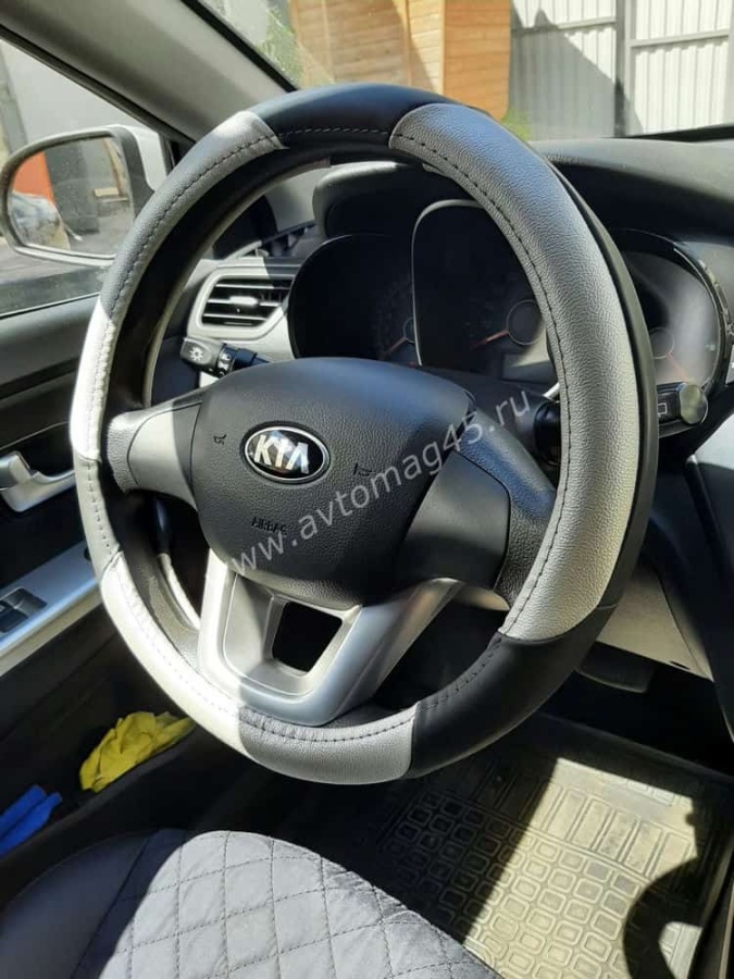 Оплетка из натуральной кожи с тремя вставками из прочной экокожи белого цвета. Модель легко одевается на руль как накладка. Вставки обеспечивают надежный хват. Такая оплетка прослужит долго, будет держать тепло зимой и не скользит в руках летом.