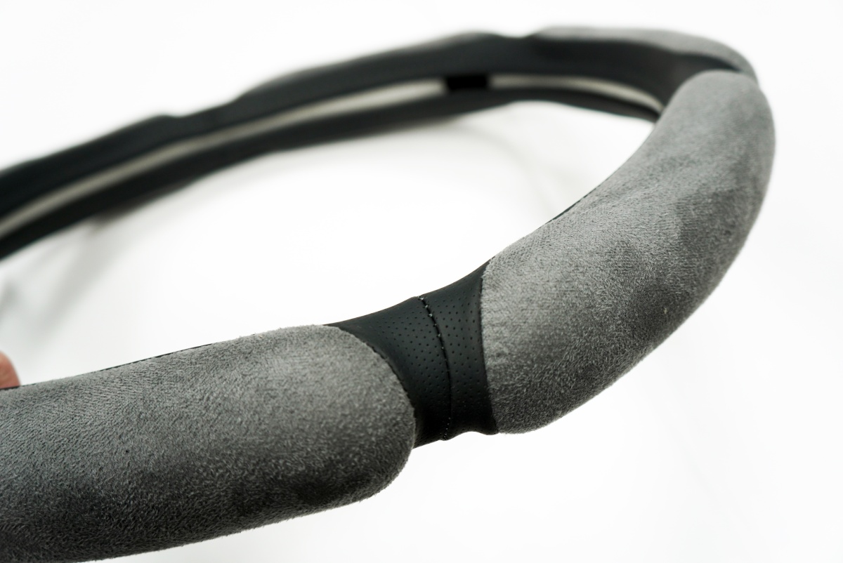 o Верхняя поверхность выполнена из качественного материала алькантара, обеспечивающего надежный контакт с руками водителя даже в экстремальных погодных условиях.