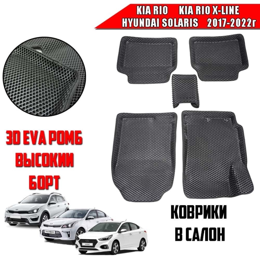 BORATEX коврики в салон 3D EVA ЭВА Kia Rio c 17г Rio X-Line Solaris c 17г чер рис ромб комп 5шт CIT