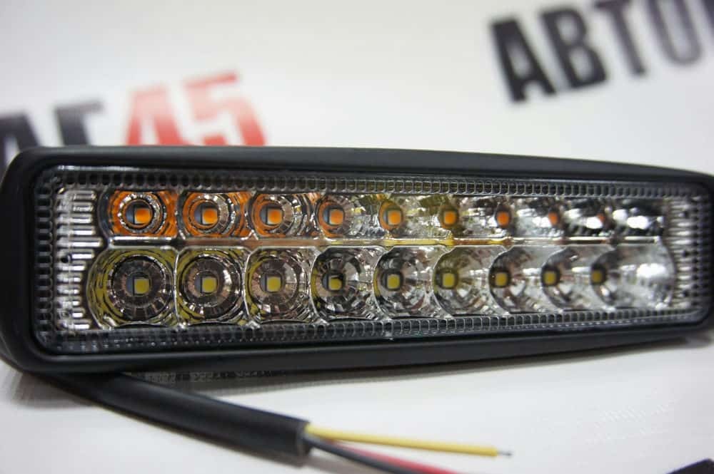 -Два ряда:9 белых диодов и 9 оранжевых диодов
