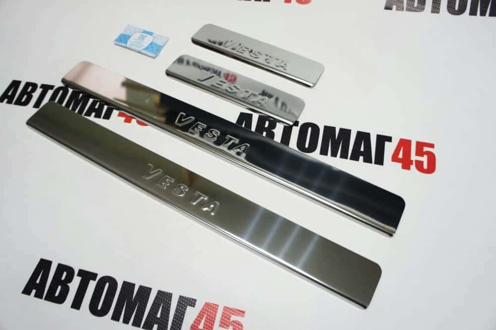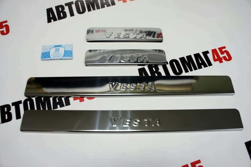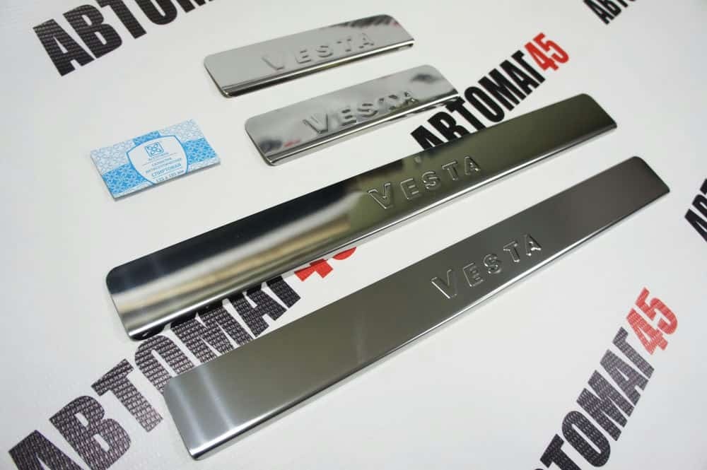 LIDER Накладки на пороги Лада Vesta Веста ВАЗ 2180 седан 4 шт нержавейка