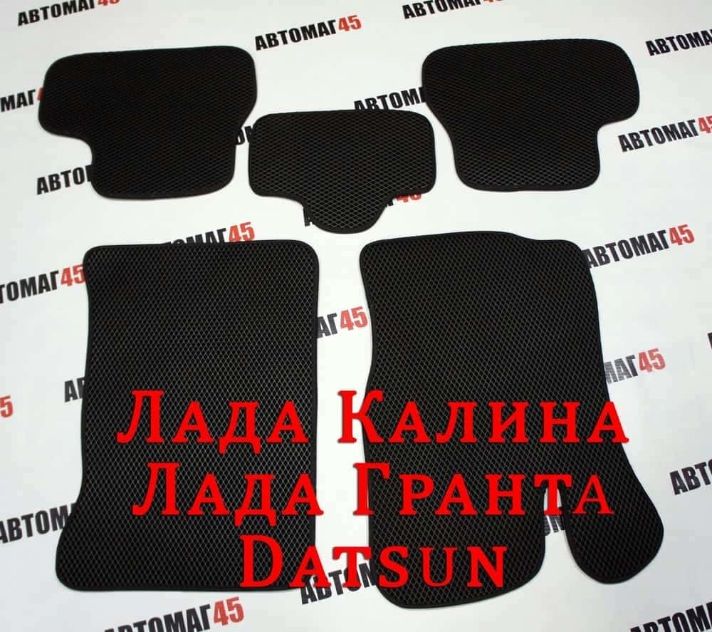 EVA ЭВА коврики в салон Лада Kalina Granta Datsun On-do Mi-do черные рисунок ромб компл 5шт