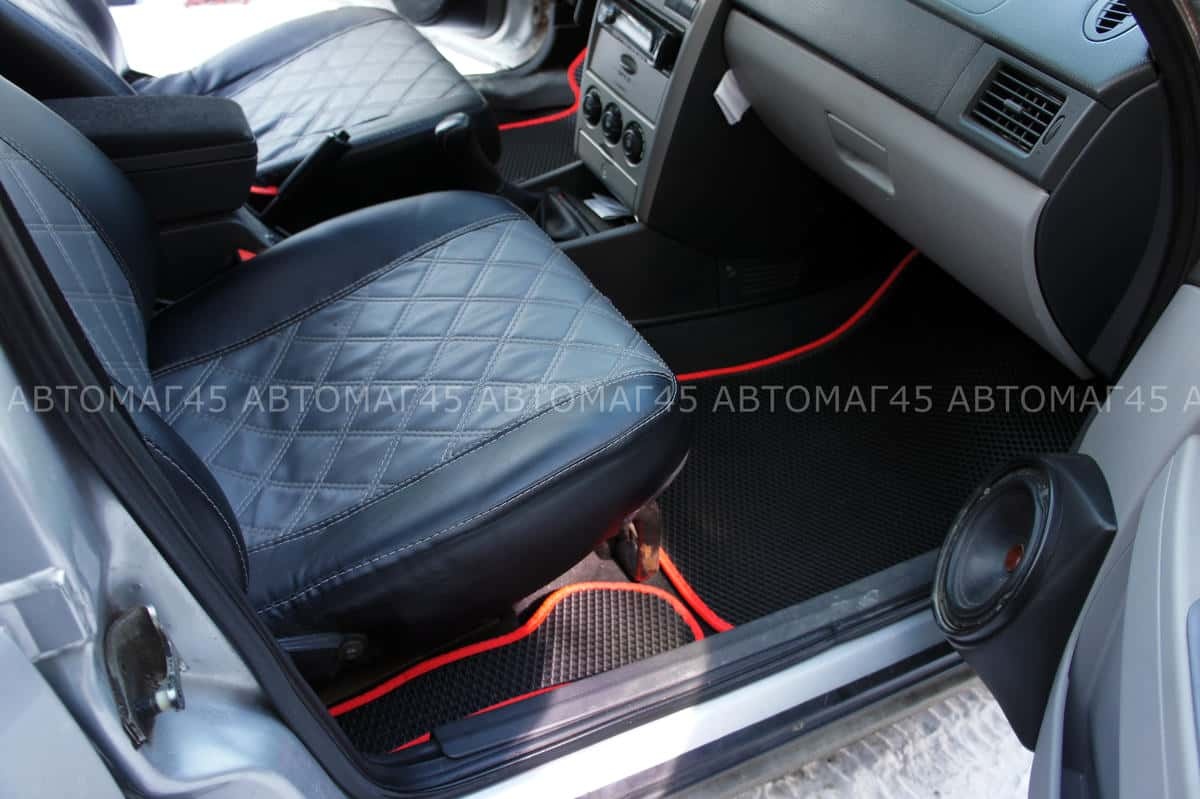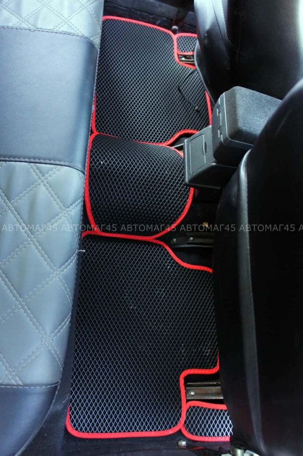 EVA ЭВА коврики в салон Лада Приора ВАЗ 2110 черные красный кант рисунок ромб комплект 5шт