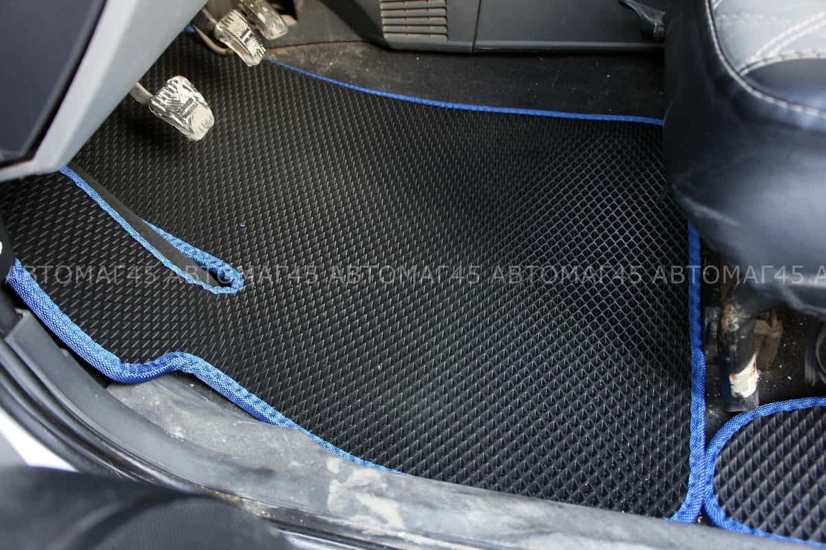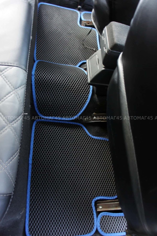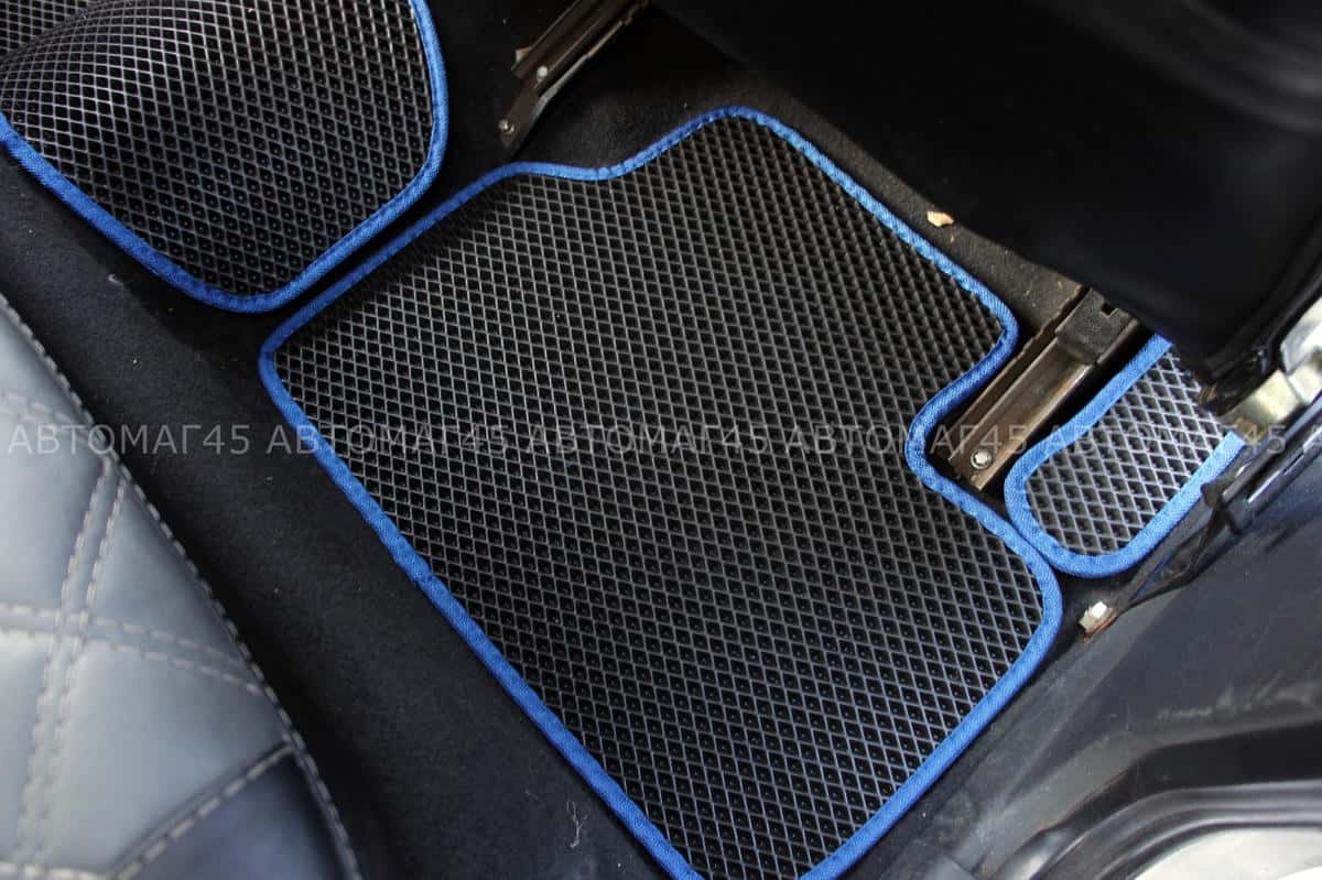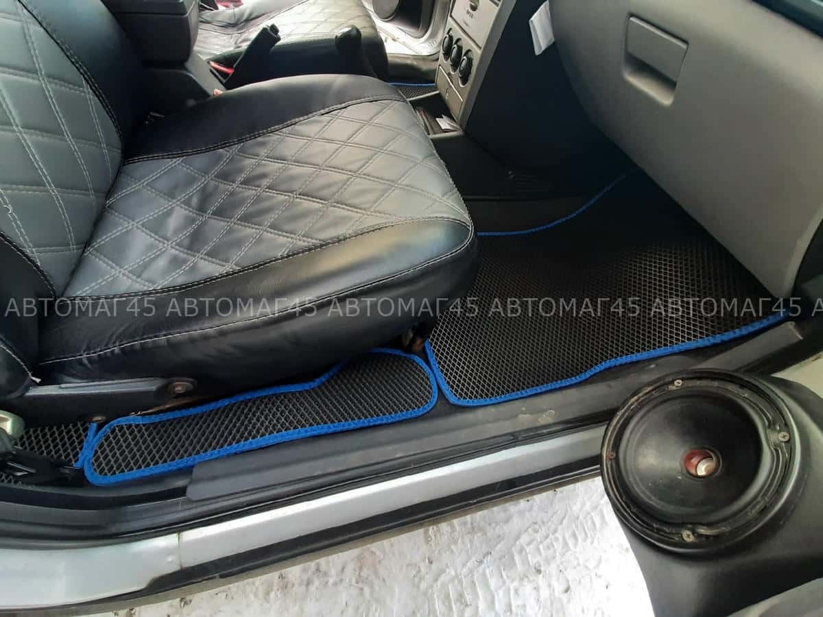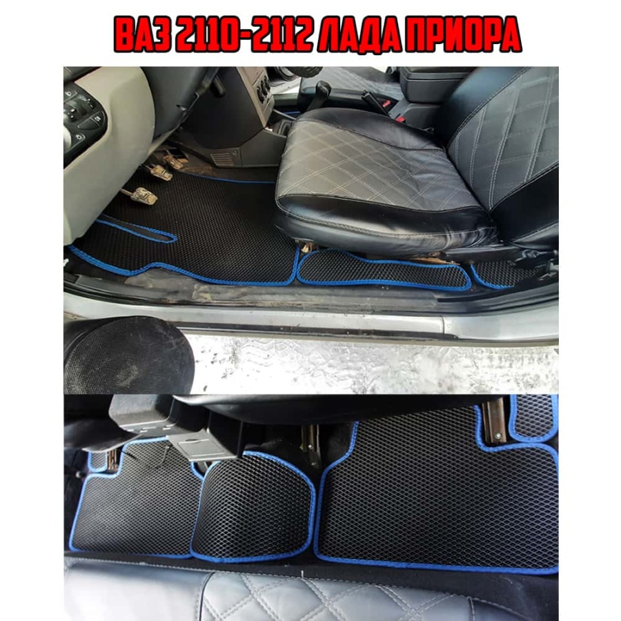 EVA ЭВА коврики в салон Лада Приора ВАЗ 2110 черные синий кант рисунок ромб комплект 5шт