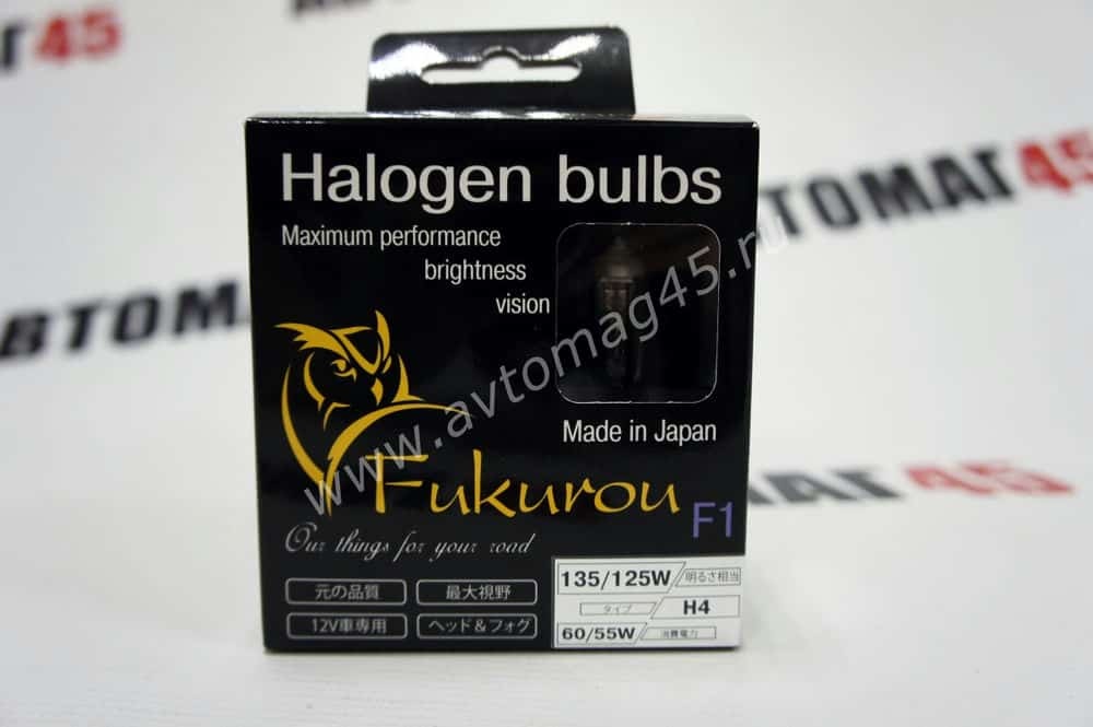 Fukurou F1-самые яркие из всех галогеновых ламп стандартной мощности. Доказано тестами различных НИИ и множеством обзоров. Согласно протоколам официальных испытаний фактический световой поток до 50% больше по сравнению со стандартной лампой 1250лм на ближнем свете против 850лм(типичное значение для заводских ламп H4). Максимальная яркость и зона освещения. Полностью прозрачные колбы без световых фильтров для большей яркости. Больший срок службы по сравнению с другими лампами максимальной светоодачи. Высочайшие характеристики, применение: автоспорт и ралли. Новинка года! Для тех, кто ценит комфорт и безопасность на дороге. Made in Japan