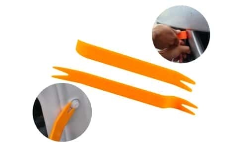 Профессиональный набор из 2 инструментов для легкого снятия дверных обшивок салона автомобиля. Изготовленные из полиуретана инструменты не царапают и не наносят повреждений окрашенным, кожаным, хромированным или другим поверхностям.