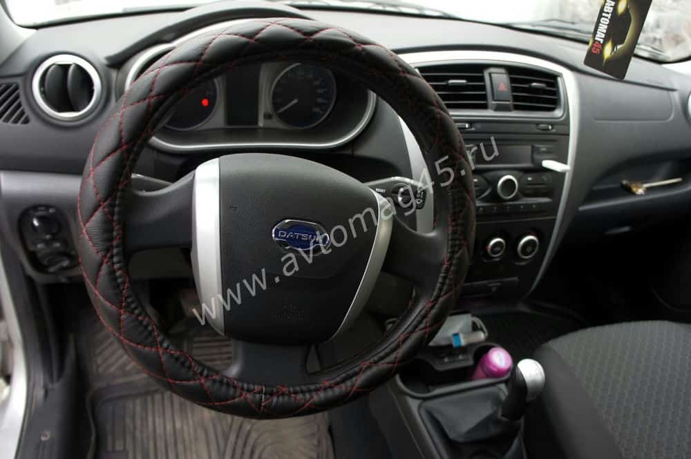 Оплетка на руль выполнена полностью из перфорированной гладкой эко-кожи без вставок.