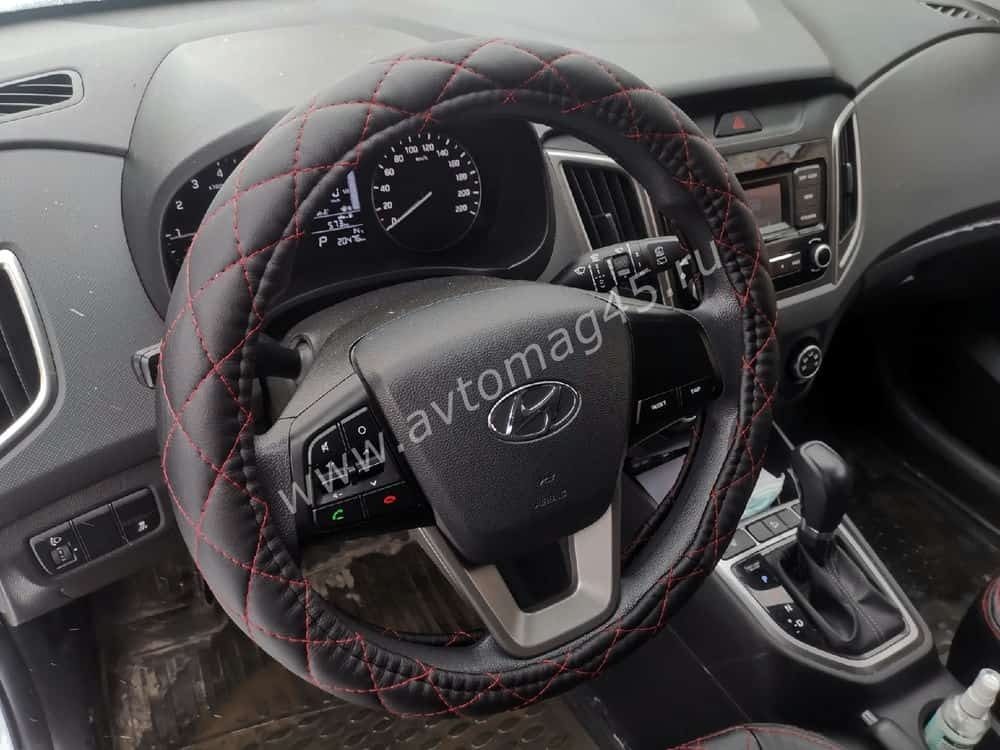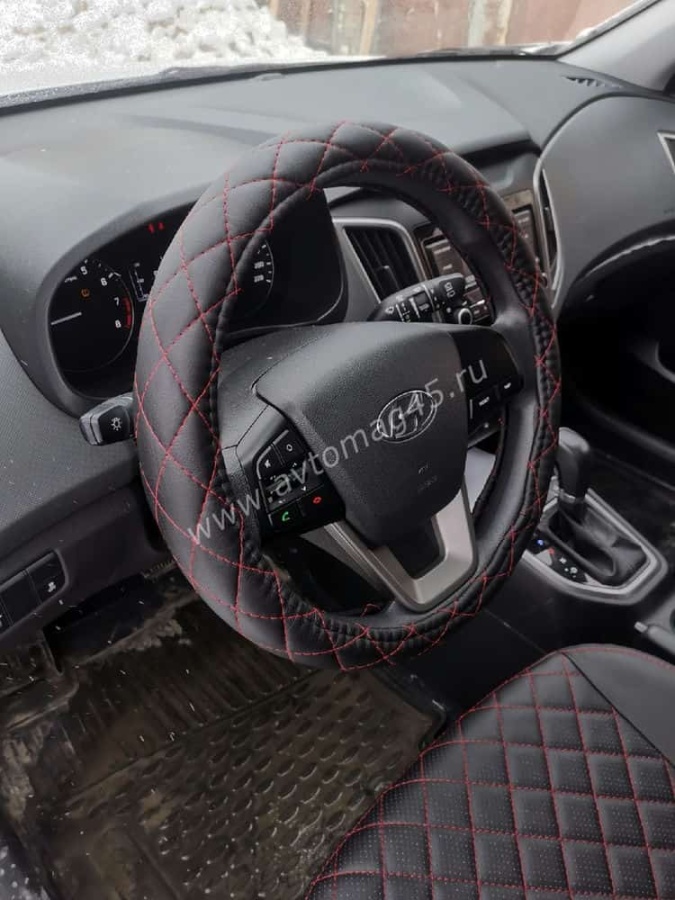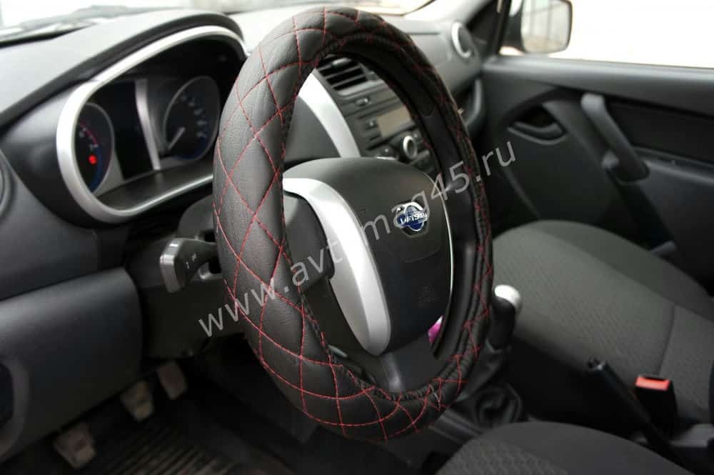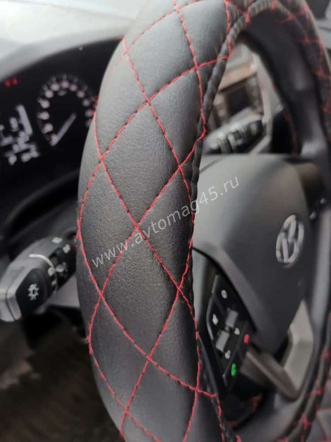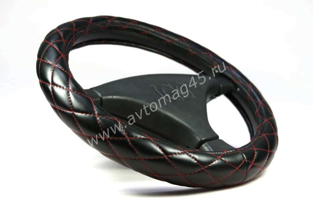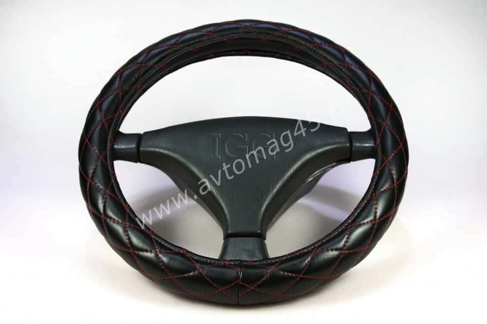 IGG 719 оплетка руля экокожа черный стеганый с красной отстрочкой