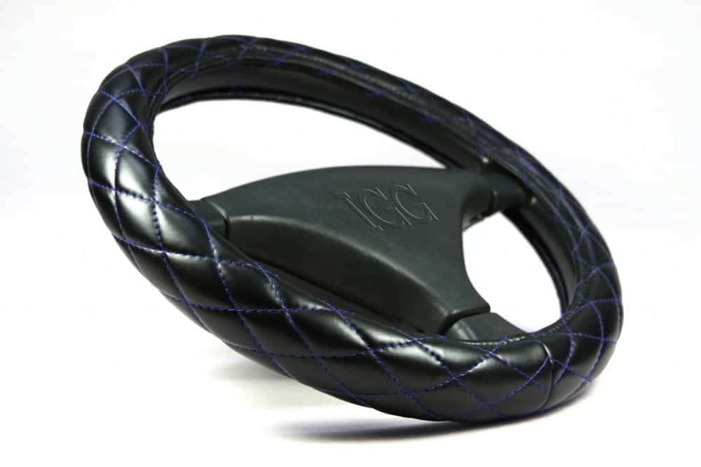 IGG 721 оплетка руля экокожа черный стеганый с синей отстрочкой