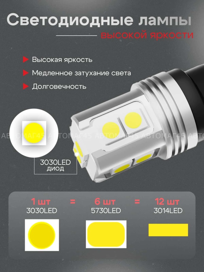Светодиодные лампочки W5W для габаритов, стоп-сигналов, подсветки салона