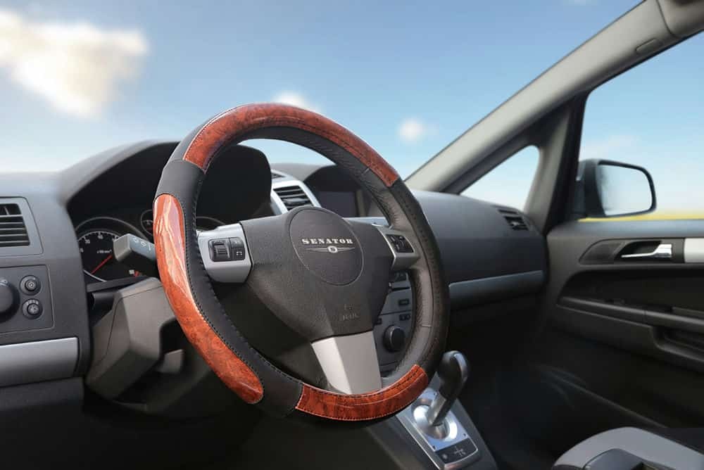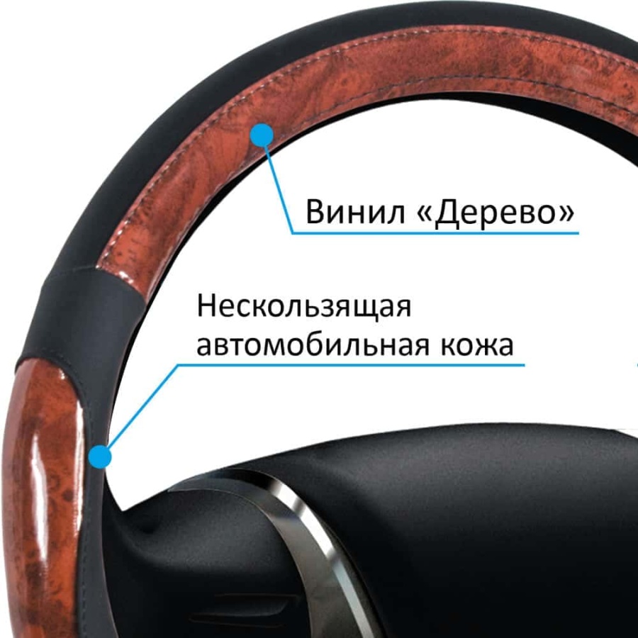 Оплетка на руль Senator Oregon из нескользящей автомобильной кожи на гладком резиновом ободе. Дополнена объемными вставками из автомобильного винила, стилизованного под дерево. Оплетка Senator Oregon легко устанавливается на рулевое колесо автомобиля и защищает его от потертостей и загрязнений.