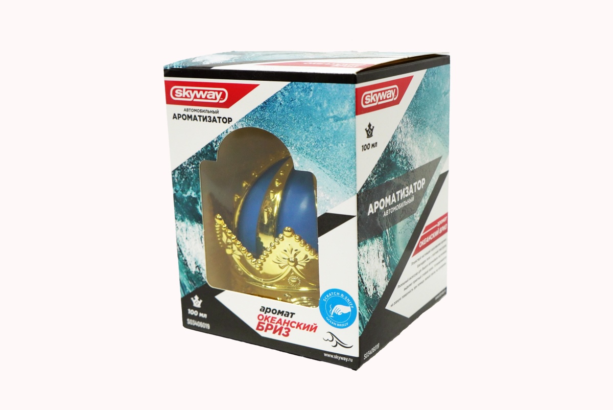 Освежитель на панель гелевый SKYWAY Корона Океанский бриз - роскошный аксессуар для вашего автомобиля, который наполняет салон приятными ароматами. Освежитель легко устанавливается на панель и украшает любой интерьер. Жидкая гелевая структура сохраняет интенсивность аромата на долгое время.