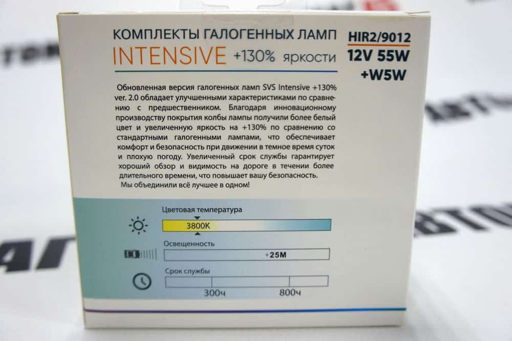 SVS лампа HIR2 9012 Intensive +130% яркости 12V 55W 3800K 2шт + W5W