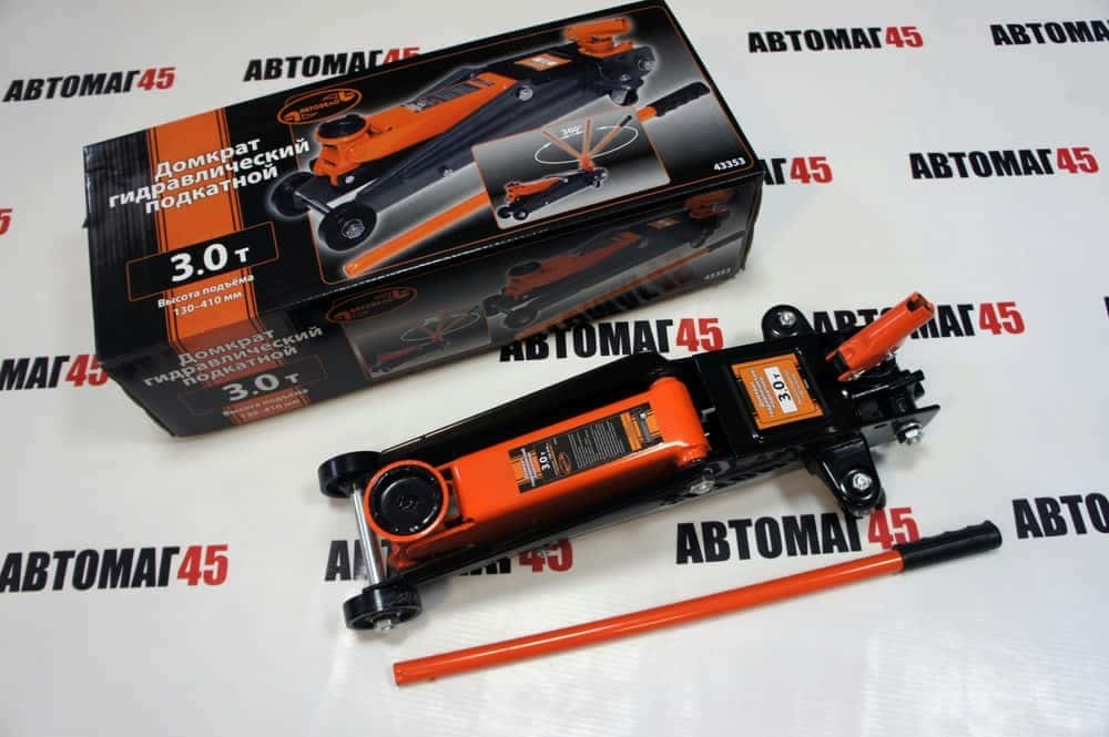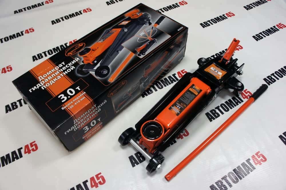 Автодело домкрат 3т гидравлический подкатной поворотная ручка высота 130-410мм