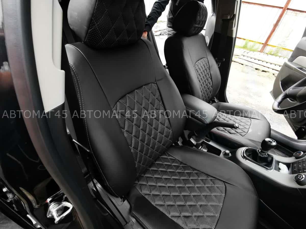 Авточехлы Chevrolet Cruze Шевроле Круз экокожа черная серая нить ромб