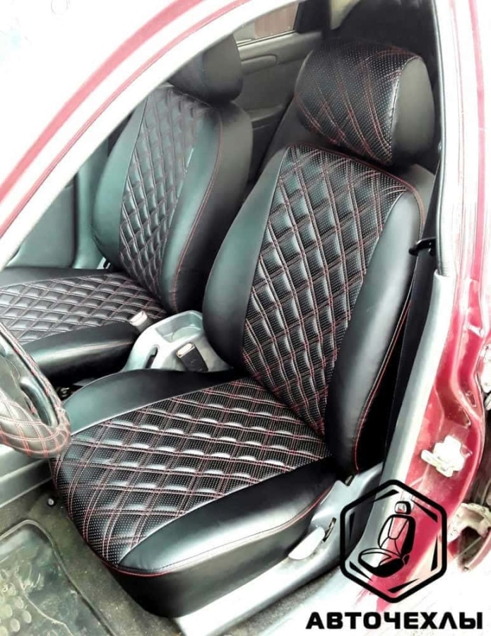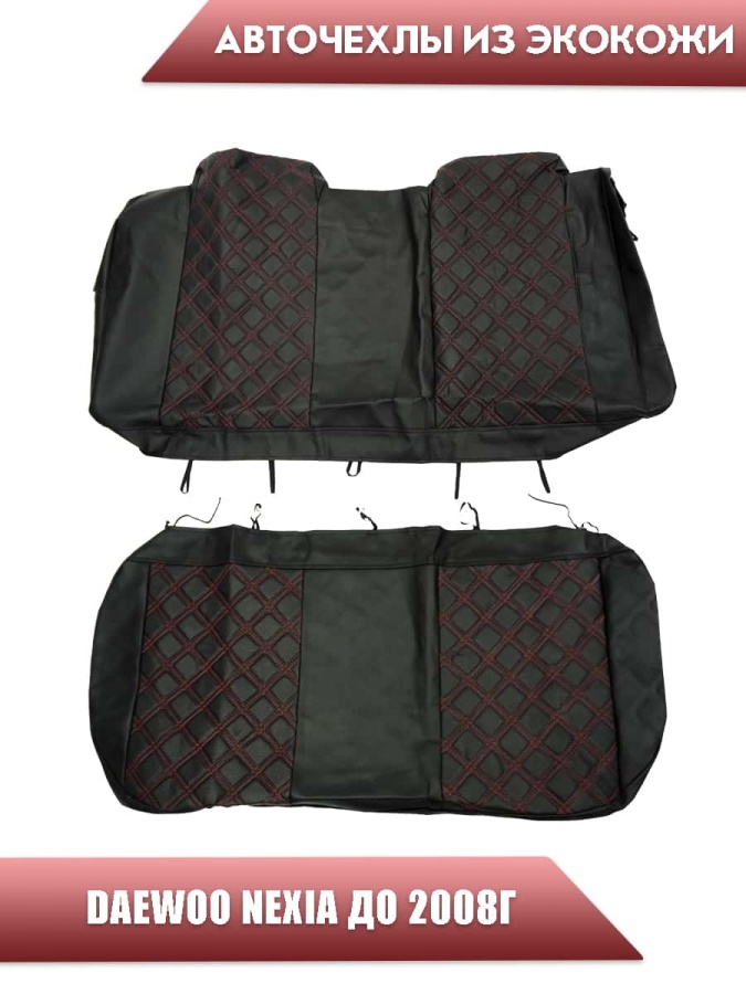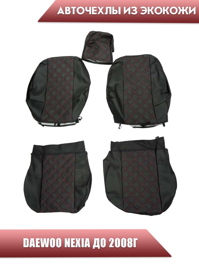 Авточехлы Daewoo Nexia Дэу Нексиа 1994-2008г экокожа черная красная нить ромб