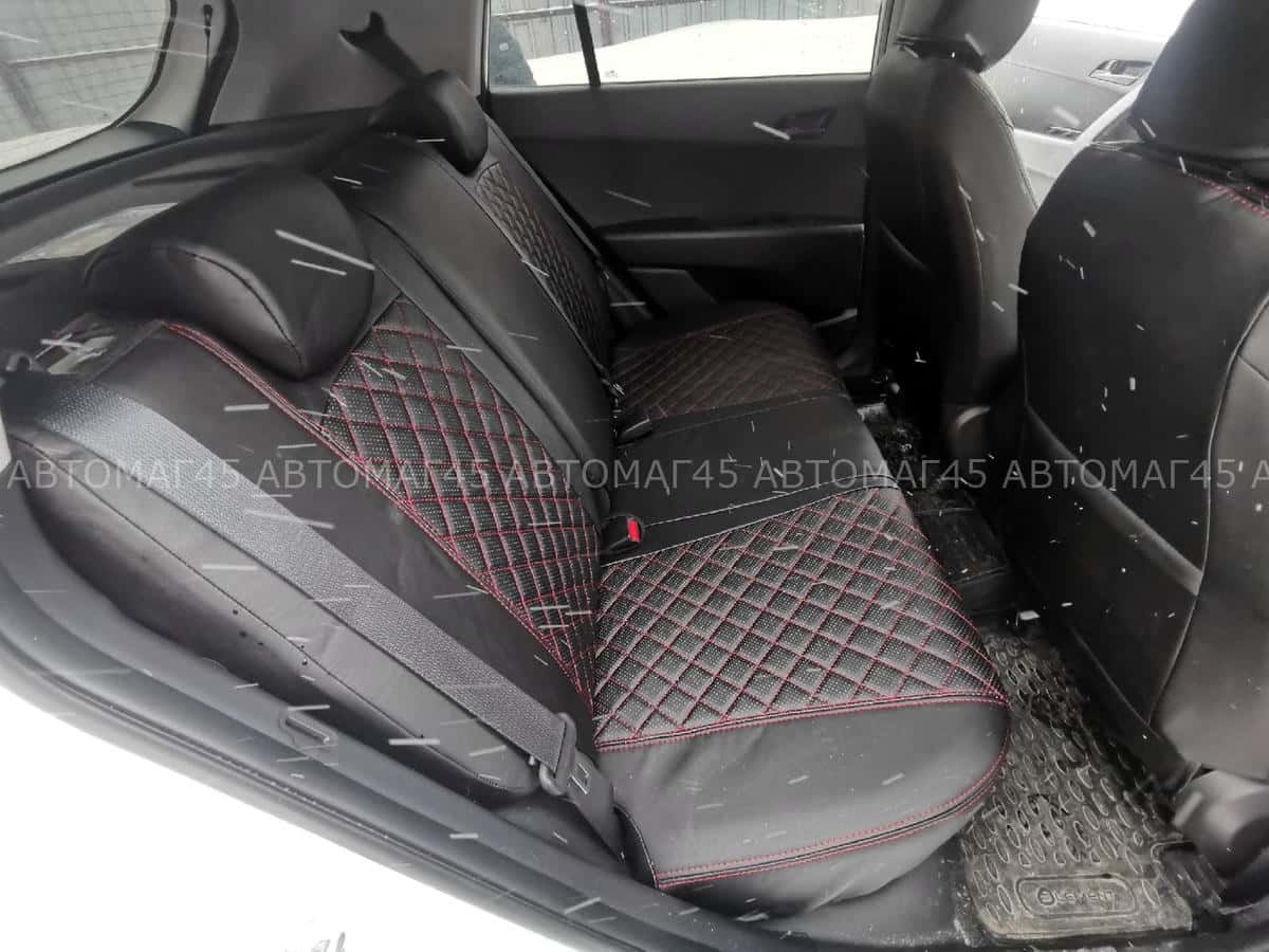 Авточехлы Hyundai Creta 1 Хендай Крета 1 2015-2021г экокожа черная красная нить ромб