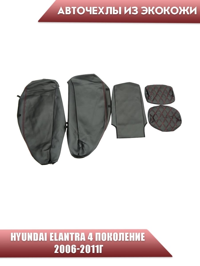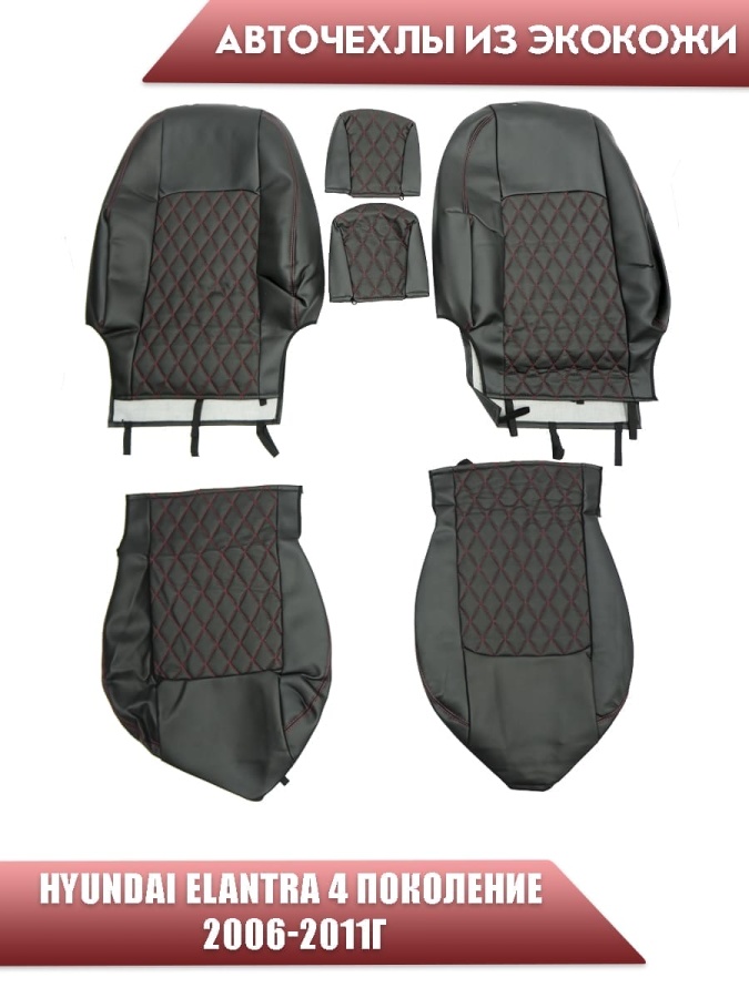 Авточехлы Hyundai Elantra IV пок Хендай Элантра 4 пок 2006-2011г экокожа черная красная нить ромб