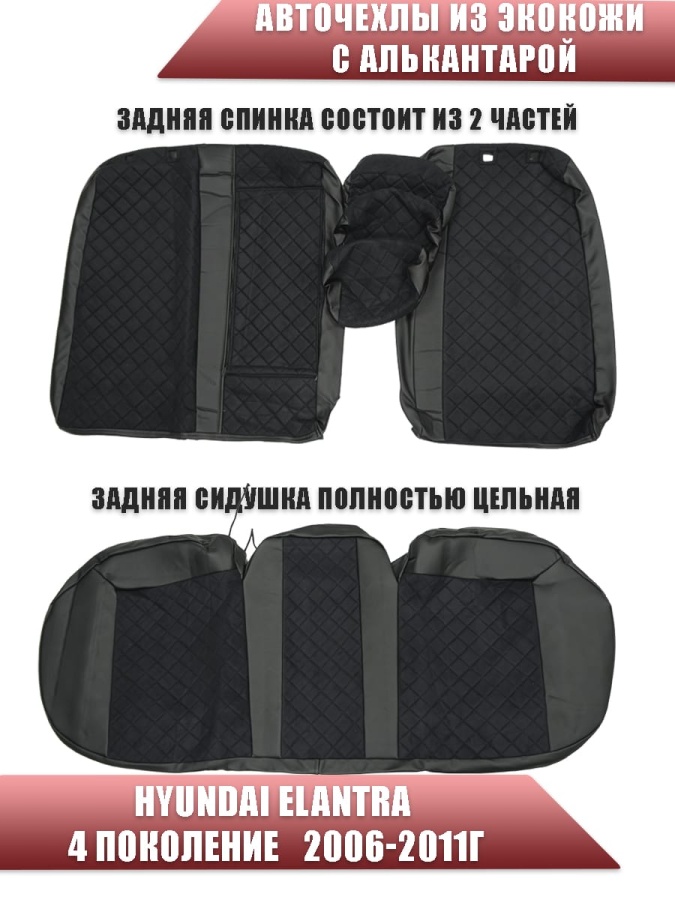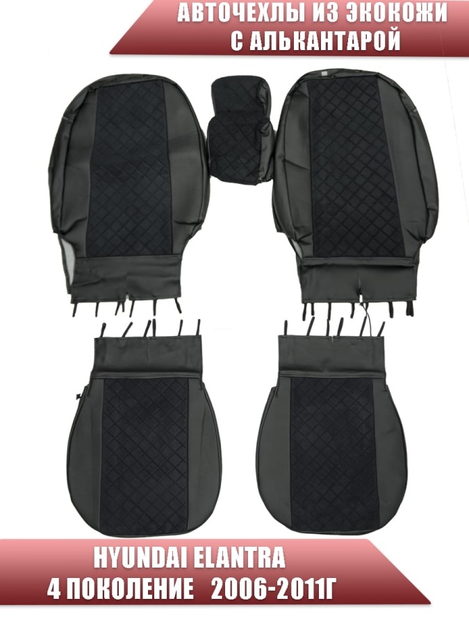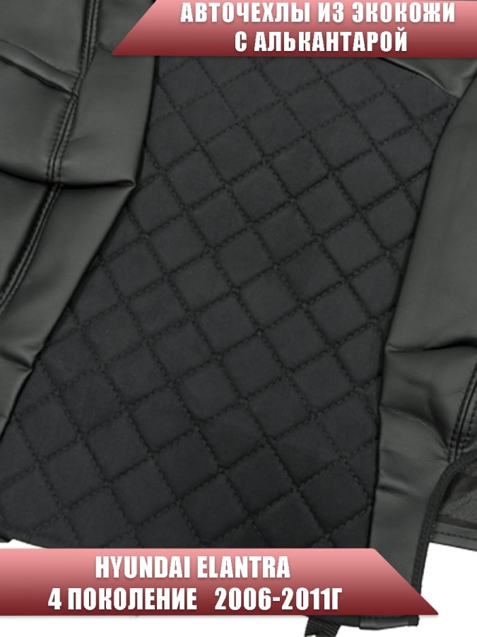 Авточехлы Hyundai Elantra IV пок Хендай Элантра 4 пок 2006-2011г экокожа алькант черная ромб София