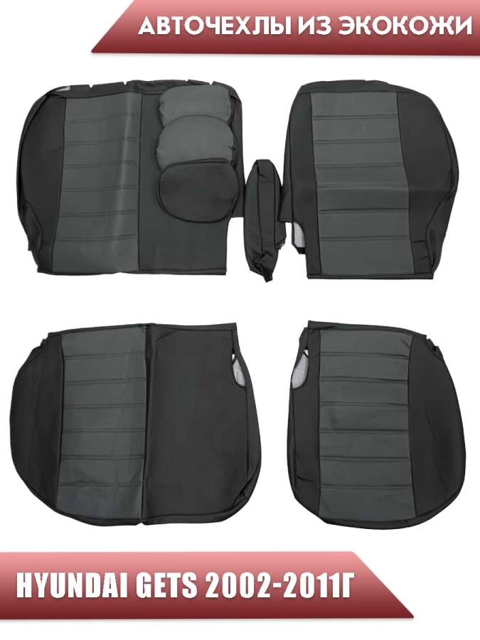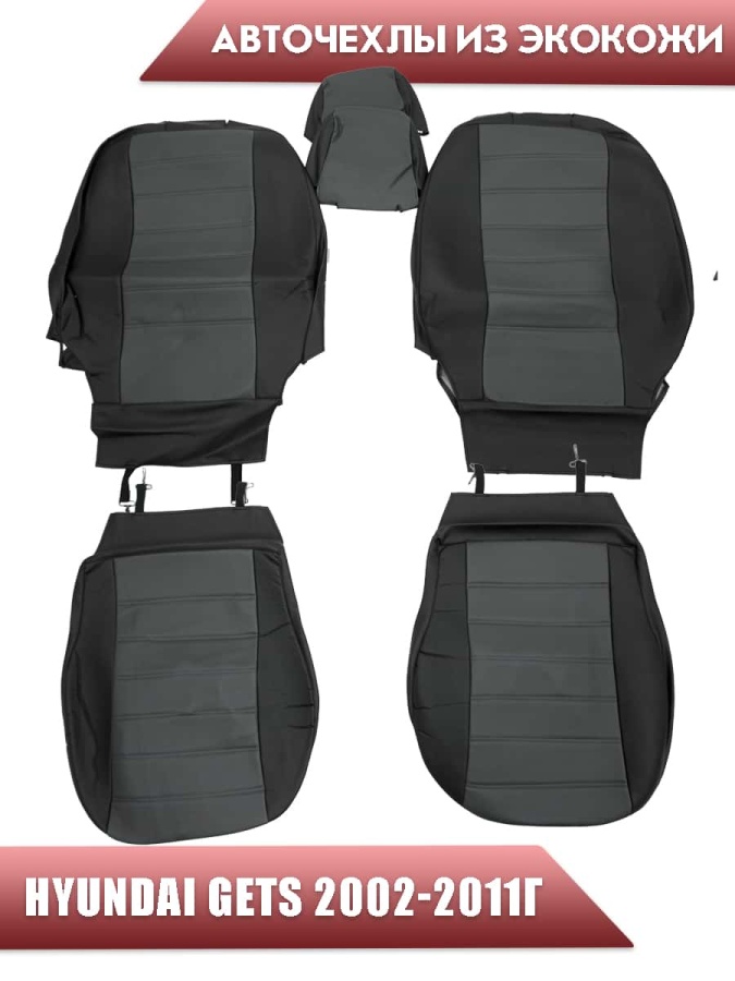 Авточехлы Hyundai Getz Хендай Гетс низ 2/3 верх 2/3 экокожа черно-серая